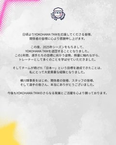 YOKOHAMA TKM 2025シーズン退団スタッフのお知らせ。